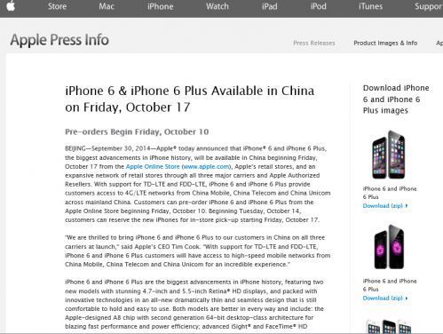 苹果公司宣布iPhone 6及iPhone 6 Plus将于10月17日在中国内地正式上市,届时用户可以通过Apple Store零售店以及国内三大运营商的零售网络和Apple授权经销商发售购买。