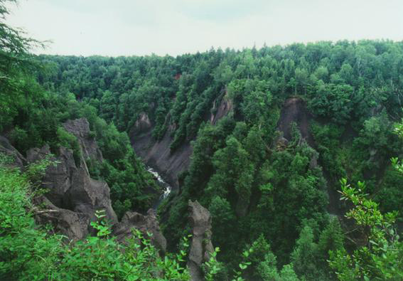 白山大峡谷长70多公里,乃火山爆发后熔岩石表面的火山灰和泥土被江水及雨水冲刷所致。北锦江从谷底流下,两岸怪石林立,奇景叠生,如泼墨画卷,美不胜收。 长白山有多少神秘之处,不是人们所能探索清楚的。这主要因为冬季厚雪封山,人迹罕至;夏季林中草木遮日,毒虫四伏,又没有路径,所以要探索老林中的秘密真是难于上青天。可是,一个偶然的机会,老天爷向人间展示出长白山的一处秘密,那就是长白山大峡谷的被发现。