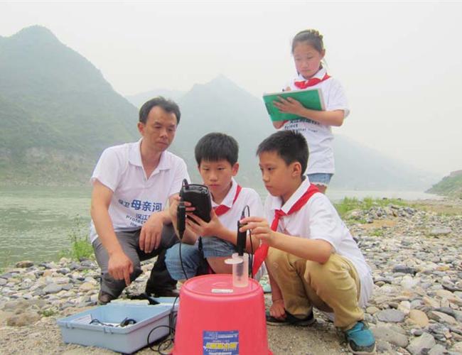 此行考察团队前往湖北十堰市、郧西县、丹江口市、襄阳城、钟祥市等地实地监测,了解全长1532公里的汉江不同地段的水质情况。在辅导老师的指导下,小小环境观察员们分工明确,利用监测仪器对水的透明度、PH值、溶解氧含量、电导率、水温、余氯等常规项目进行监测,并记录了数据。