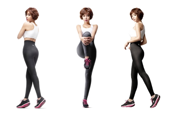 在全球运动品牌skechers紧身弹力裤的海报中,黄静茵展现了让人嫉妒的曲线美。