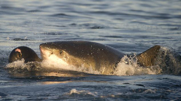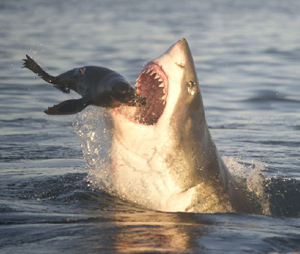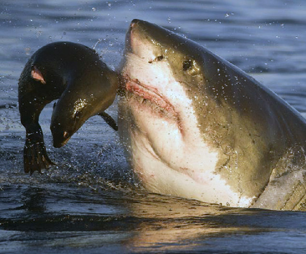 英国野生动物摄影师David Yarrow在南非开普敦福尔斯湾抓拍到大白鲨猎杀海豹的整个过程。