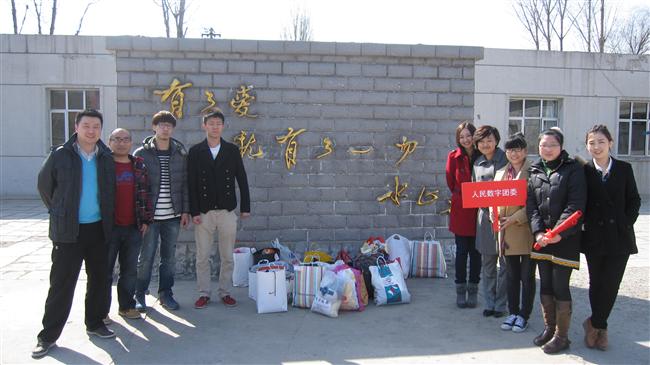 3月14日下午,人民数字团委郭熠和同事们来校开展活动,学习雷锋精神,并为农家女学校捐赠衣物,其中上衣(外套)13件;裤子57条;秋衣短袖68件;毛衣36件。